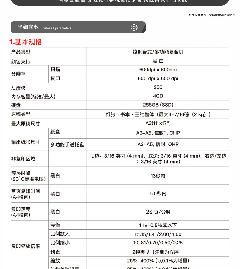 A4復(fù)印速度(黑白)  :   10